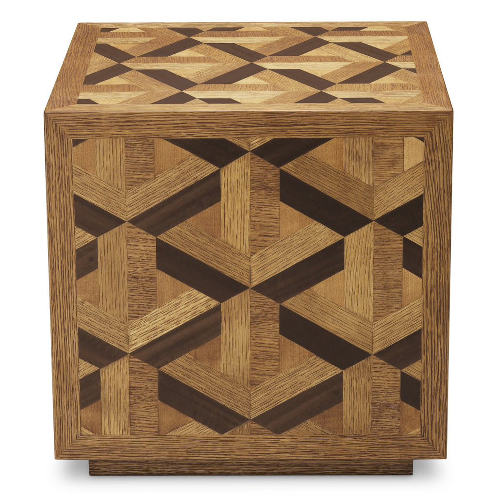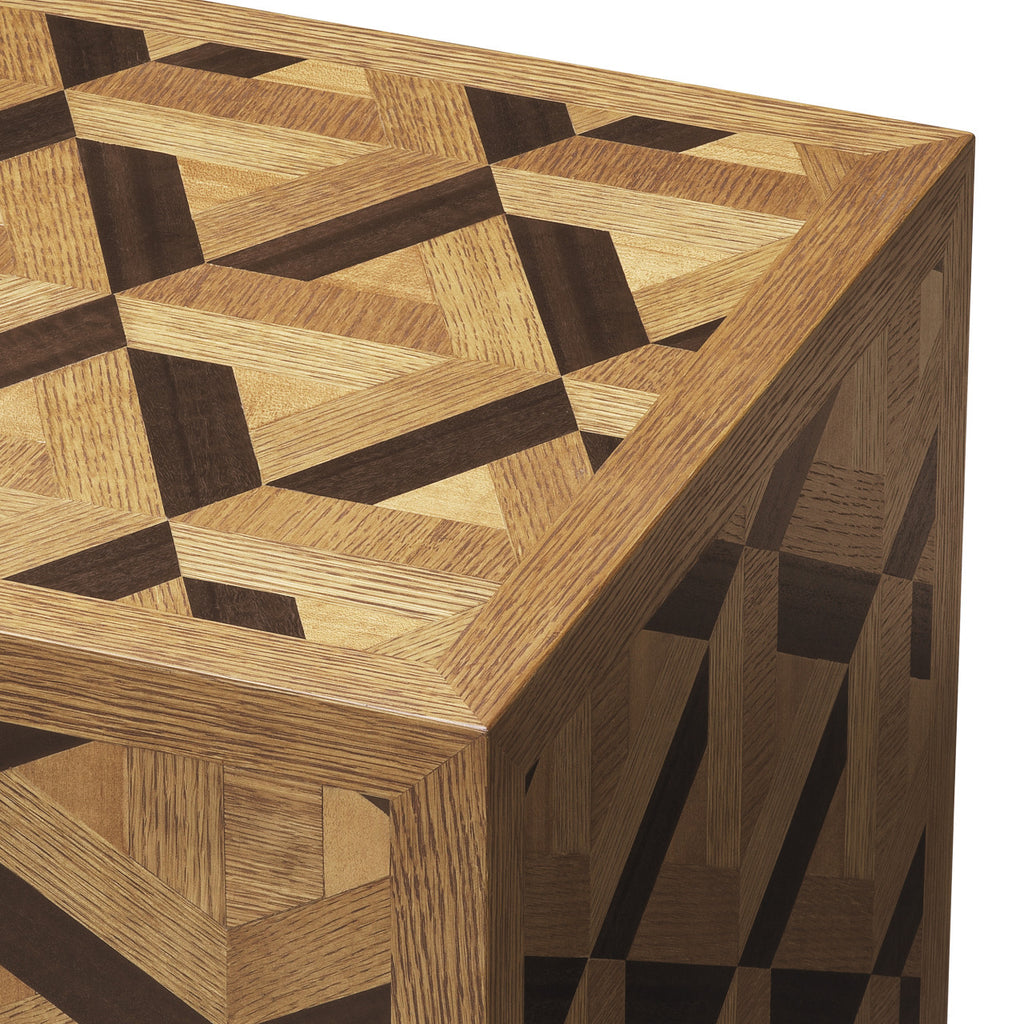 Ontdek verfijnde elegantie met de Side Table Rubicon, uitgevoerd met een opvallend nieuw ingelegd fineerpatroon in warme, natuurlijke tinten. Vervaardigd via een nauwgezet proces waarbij laser-gesneden fineerstroken met de hand worden samengevoegd, geperst, gebonden en naadloos op het oppervlak aangebracht, belichaamt dit meubelstuk echt vakmanschap.