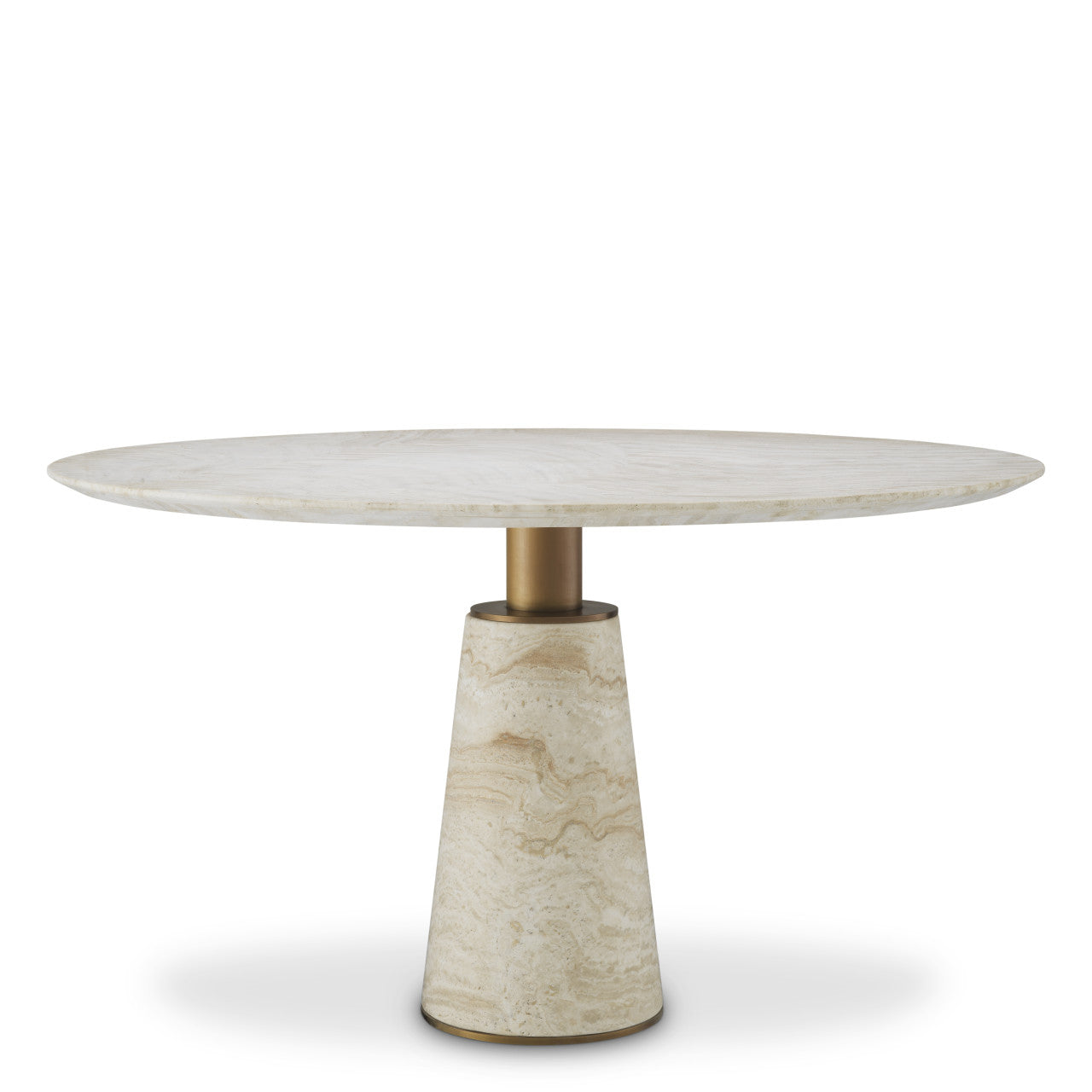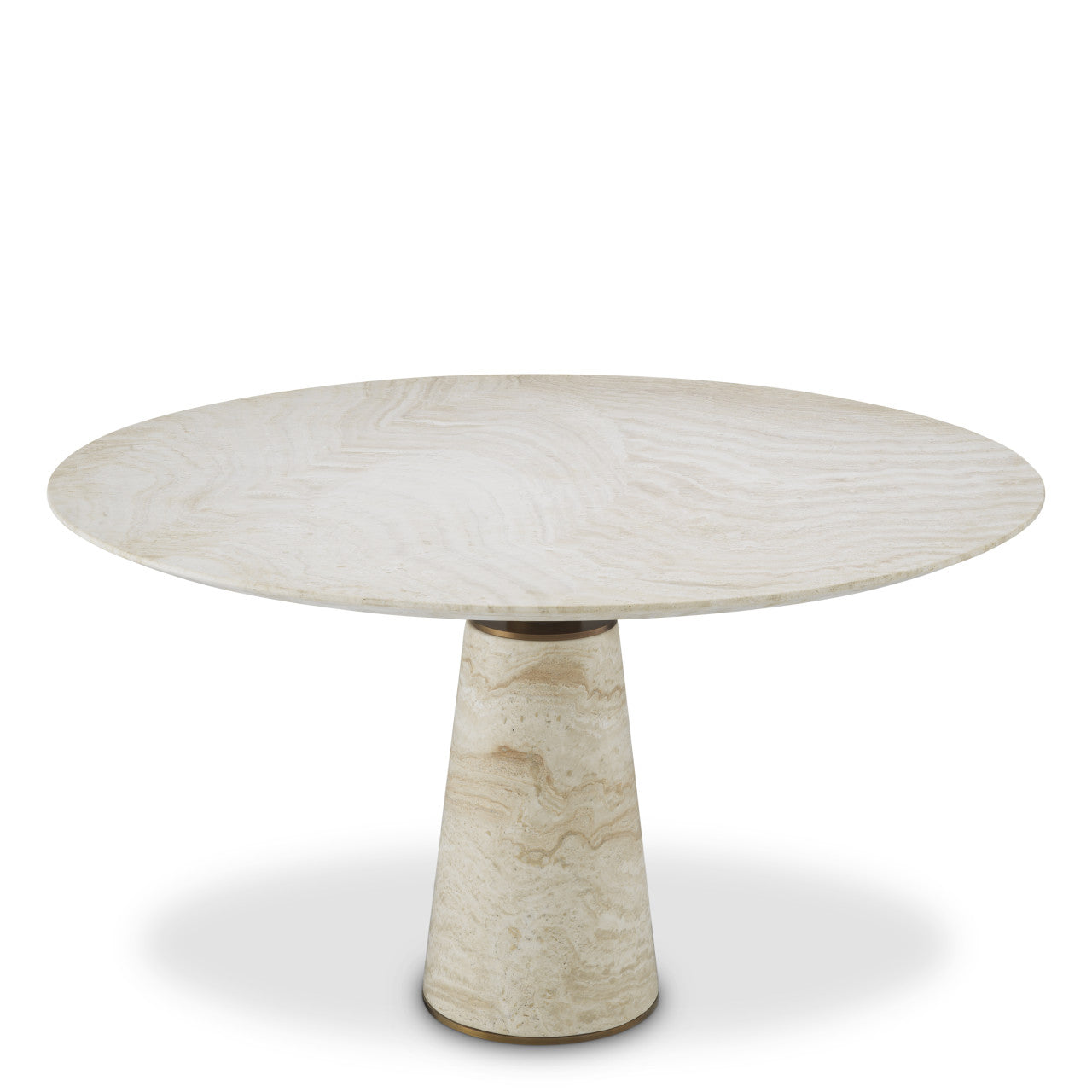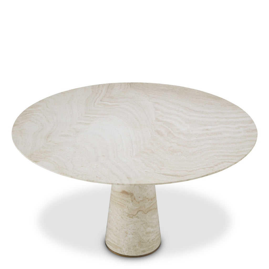 Geniet van de opvallende harmonie van natuurlijk travertin en strakke contouren die samenkomen in de Eettafel Genova. De warme, aardse tinten en het gepolijste stenen blad stralen een gedurfde, verfijnde esthetiek uit die tijdloze elegantie belichaamt, en maken dit stuk tot een onberispelijke keuze voor wie subtiele grandeur en blijvende stijl waardeert.