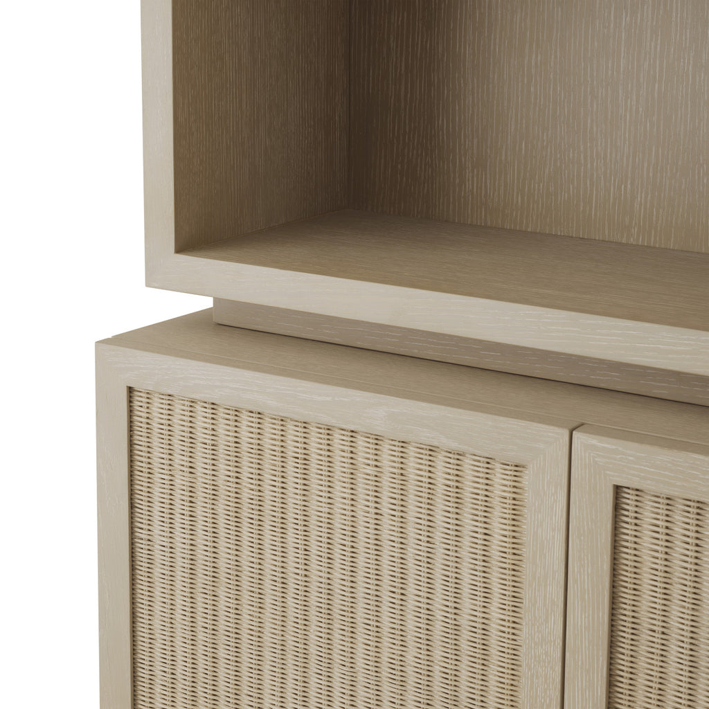 Het Borchard Cabinet belichaamt natuurlijke elegantie en combineert gewassen eikenfineer met fijn geweven rattan, waarbij subtiele texturen in een warm, neutraal palet worden getoond. Deze harmonieuze mix van organische materialen creëert een uitnodigende uitstraling en straalt verfijnde eenvoud en tijdloze charme uit.
