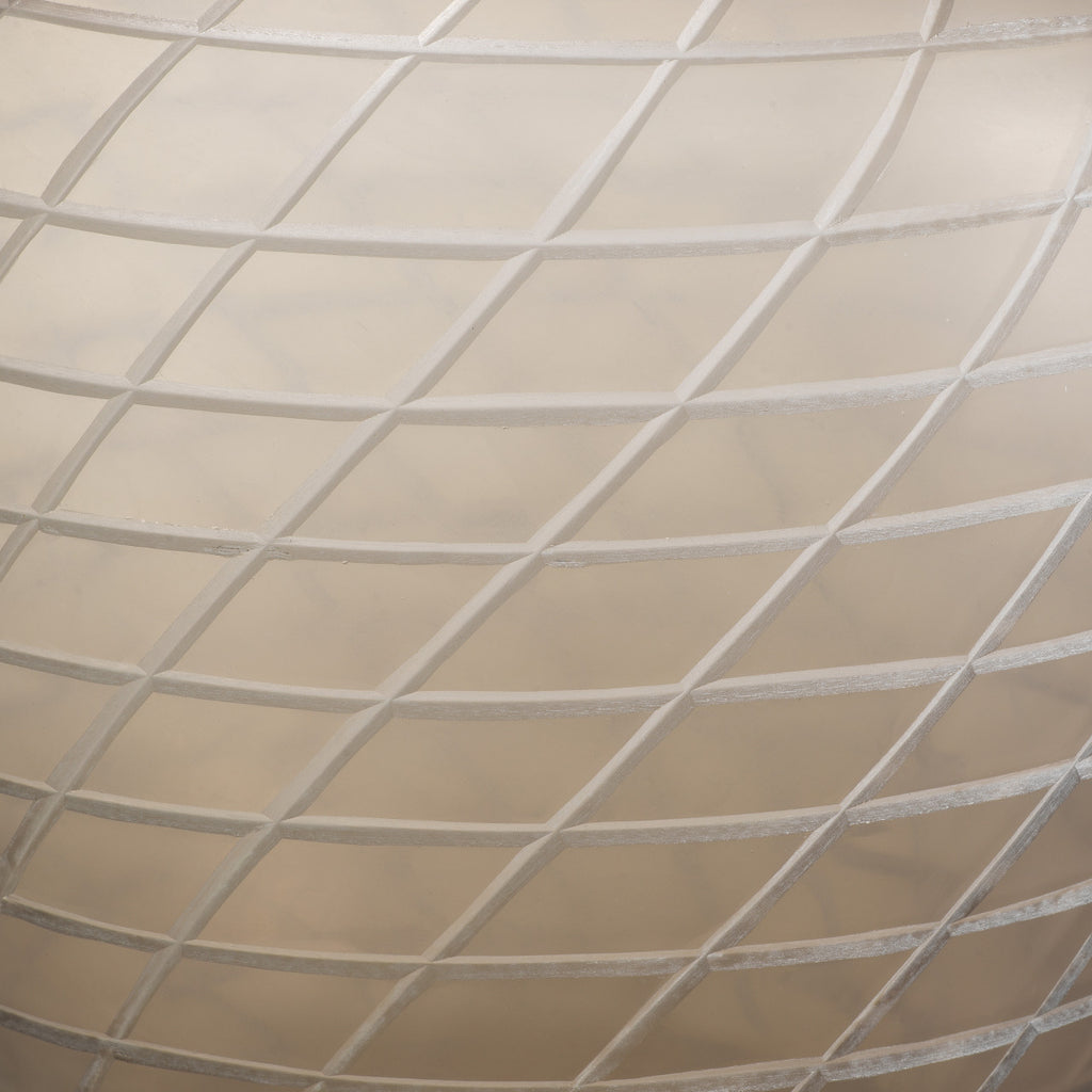 Verhoog de uitstraling van je interieur met de Vase Tarano L, gemaakt van zandkleurig gerecycled glas, mondgeblazen en voorzien van verfijnde handgeslepen patronen.